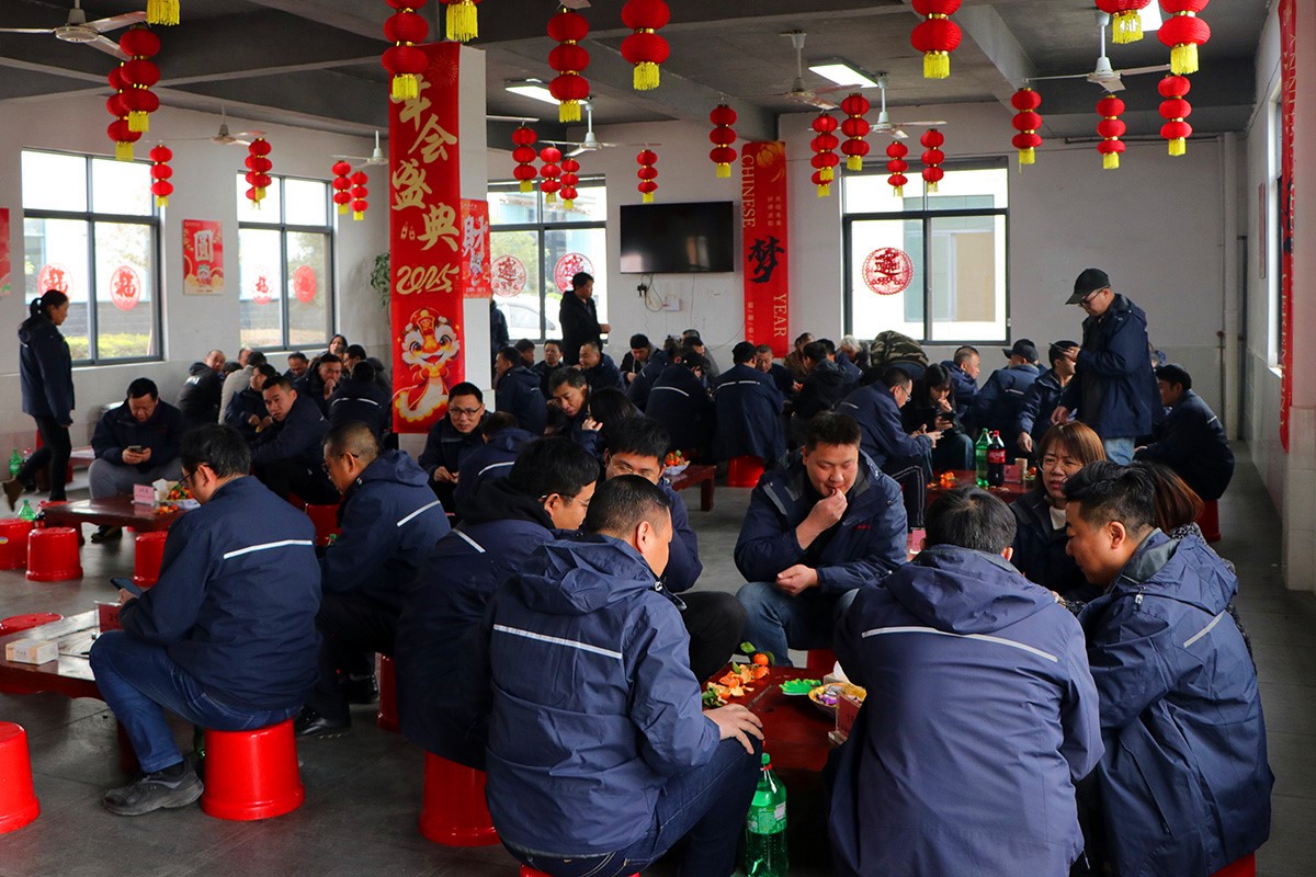 團(tuán)年飯期間,食堂內(nèi)歡聲笑語(yǔ)不斷。大家或舉杯共飲,或談笑風(fēng)生,或合影留念,共同度過了一個(gè)溫馨而難忘的夜晚。這場(chǎng)新春團(tuán)年飯不僅加深了員工之間的友誼和團(tuán)結(jié),也為大家提供了一個(gè)放松身心、享受美食的機(jī)會(huì)。