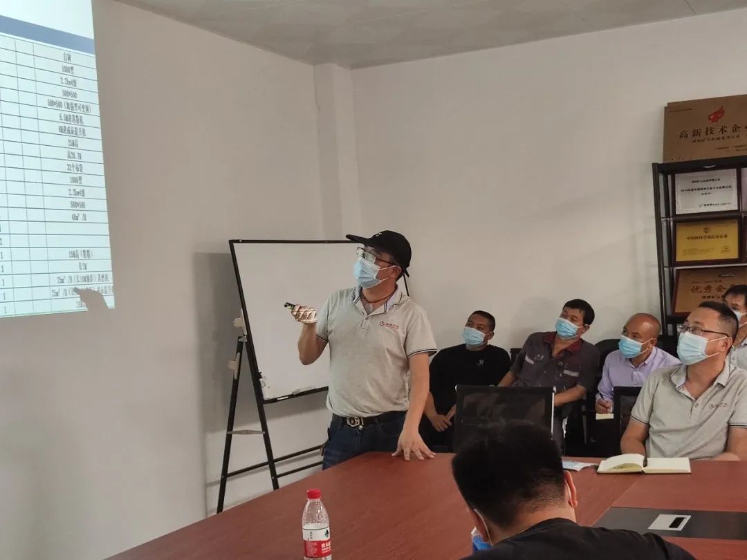 會上,研發(fā)部工程師鄧源就福建、廣西等多個氫氧化鈣生產(chǎn)線項(xiàng)目分別從方案設(shè)計、設(shè)備采購、以及設(shè)備安裝施工過程中遇到的問題做項(xiàng)目總結(jié)匯報。