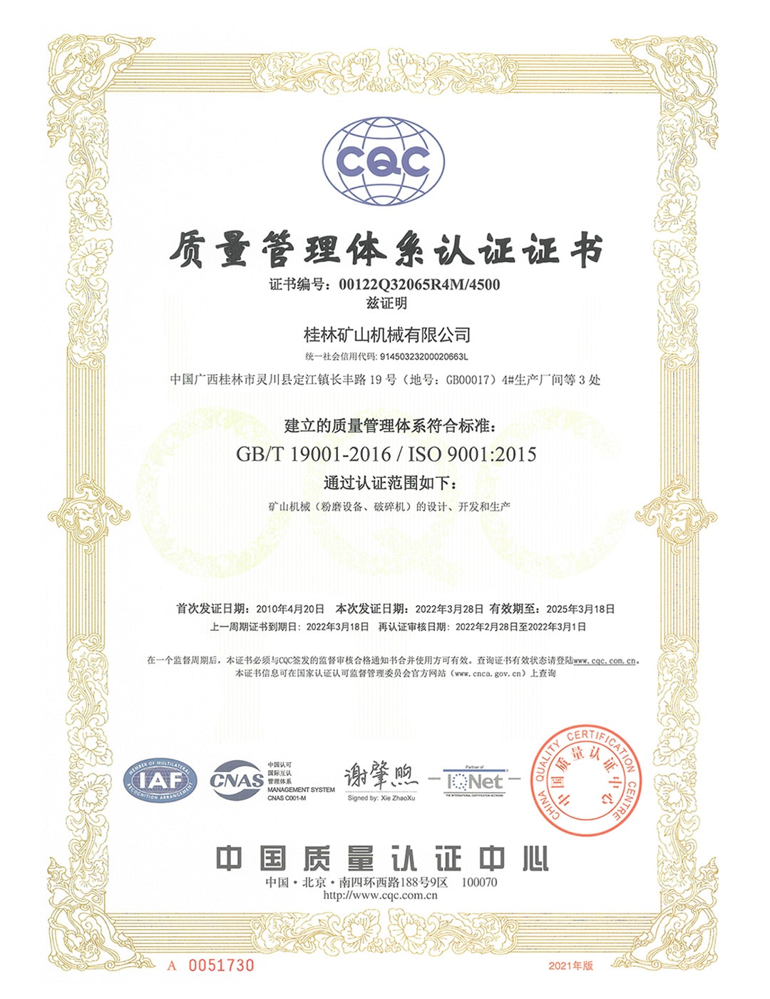 2022年末,自治區市場監督管理局發布了《關于公示廣西2021年度“守合同 重信用”企業名單的通告》,桂林礦機憑借誠信的經營理念和良好的市場信譽等優勢,再獲“守合同 重信用”企業榮譽稱號。這份殊榮不僅是桂林礦機持續耕耘“以信為本”的努力付出的結果,更是桂林礦機“技術升級、研發升級、工藝升級、文化升級”的錘煉升級。