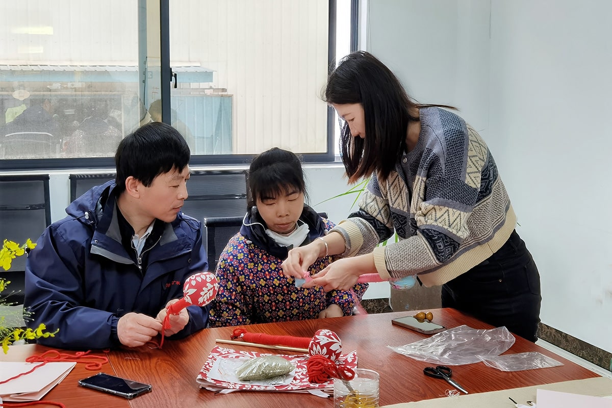更令人感動的是,在制作養生錘的過程中,女同事們不僅是在學習技藝,更是在交流心得、分享經驗。她們互相學習、互相幫助,共同完成了一件件作品。這種團結協作的精神,不僅體現在養生錘的制作上,更體現在她們日常的工作中,她們是公司不可或缺的力量,是推動公司發展的重要動力。