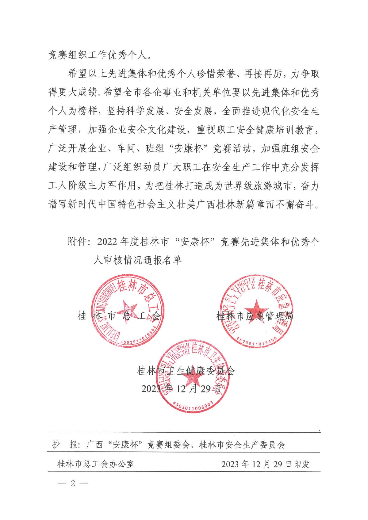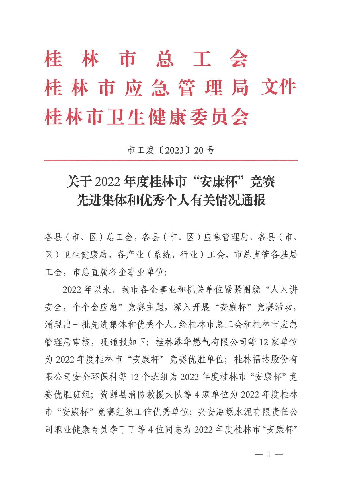 喜報!桂林礦機榮獲桂林市“安康杯”競賽先進集體